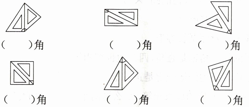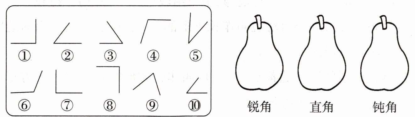 1. 用三角板上的直角比一比,把序号填在里。