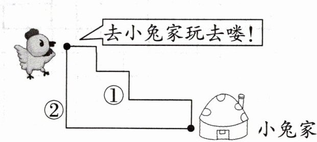4. 小鸡去小兔家有两条路可以走,①②两条路相比,谁更长?在正确的说法后面的方框里画“√”。