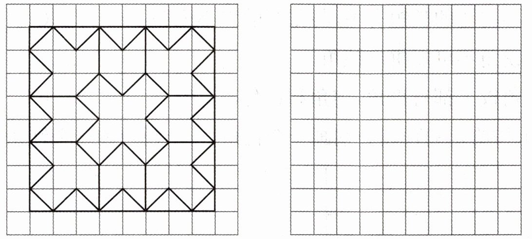 在右边的空格中,按照以下步骤画出与左边图案相同的图案: