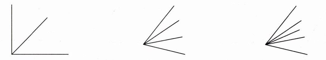 3. 在下面的方格纸上先画一个直角,再在直角的左边画一个比它大的角,在直角的右边画一个比它小的角。