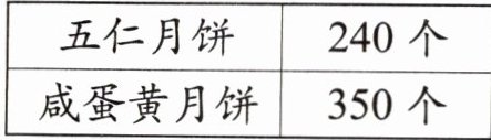 4. 某超市在中秋节时将五仁月饼和咸蛋黄月饼搭配成大礼包,每个大礼包中有3个五仁月饼和5个咸蛋黄月饼。下面是该超市五仁月饼和咸蛋黄月饼的存货情况,它们最多能被搭配成多少个大礼包?