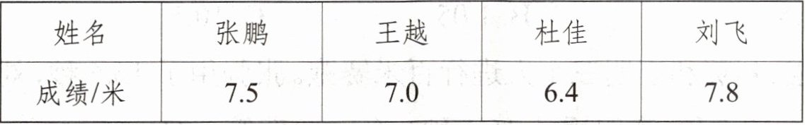 3. 下面是三年级4名男生掷实心球的成绩。