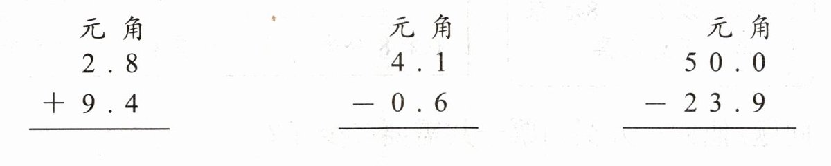 2.8 元 + 9.4 元 = 4.1 元 - 0.6 元 = 50 元 - 23.9 元 =