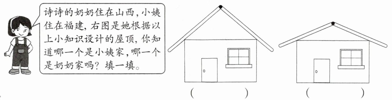 5. 我国居民屋顶的坡度由南往北是逐渐减缓的,呈现南尖北平的特点。南方屋顶高而尖,原因是南方的年降水量大,气候炎热,高而尖的屋顶既利于排水,又利于通风散热。