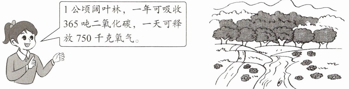 (2)这个森林公园的阔叶林一天可释放多少千克氧气?