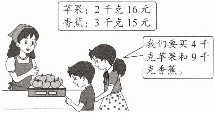 4. 小丽和小明到水果店买苹果和香蕉,他们共需付多少钱?