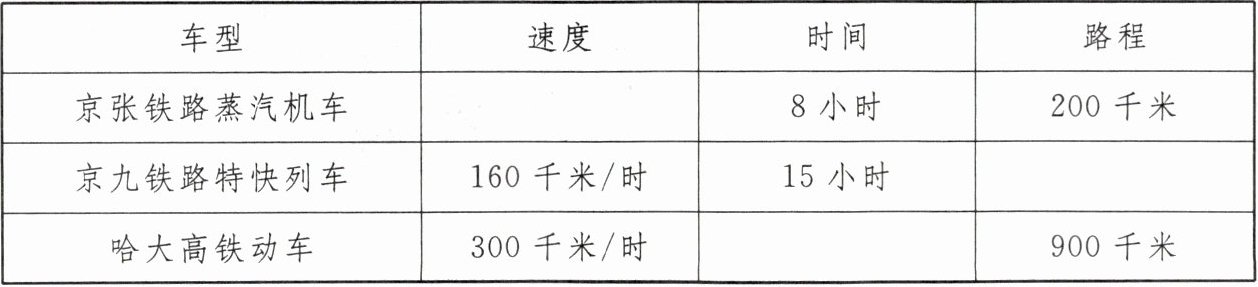4. 京张铁路是我国自行设计并建造的第一条铁路;京九铁路是我国一次性建成的最长双线铁路;哈大高铁是世界上首条高寒高铁。请将下表填写完整。