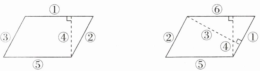 4. 指出下面平行四边形的底边以及底边上的高。(填序号)