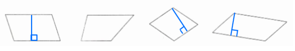 3. 下面哪些图形是平行四边形?画出每个平行四边形的高。
