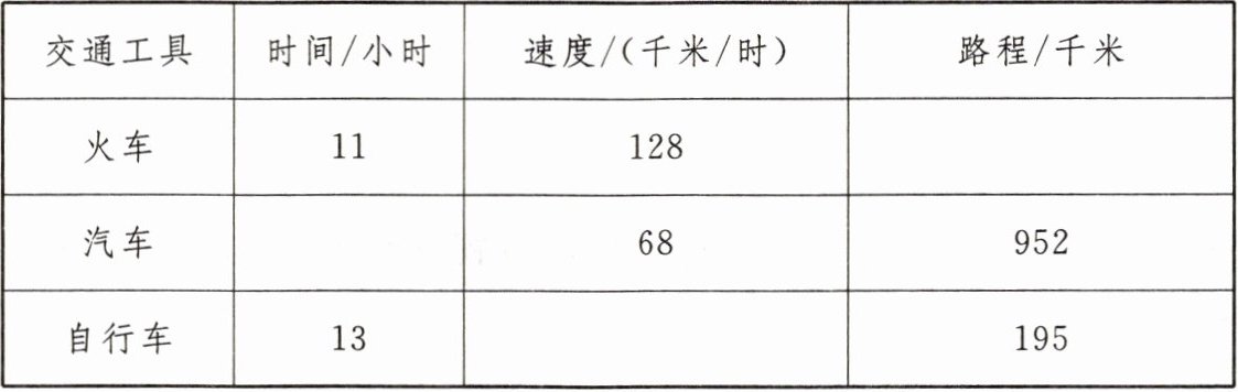|交通工具|时间/小时|速度/(千米/时)|路程/千米|