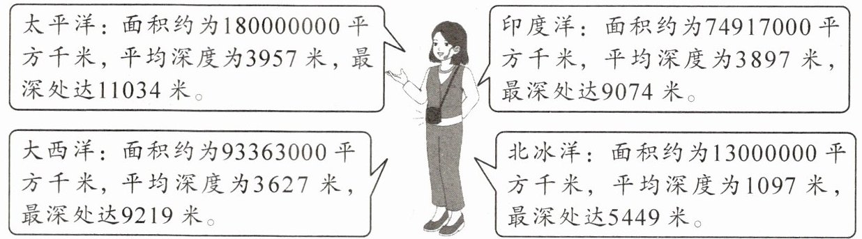 4. 同学们在博物馆里听讲解员介绍世界四大洋。