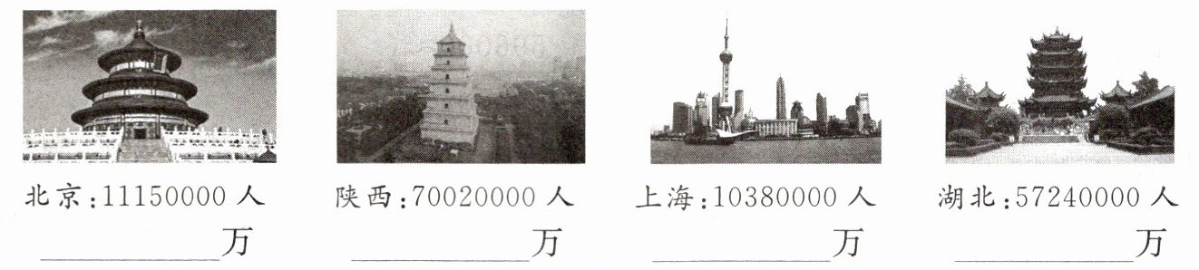 1. 下面是某年国庆节期间我国部分省、直辖市接待的旅客人数,请你把这些数改写成用“万”作单位的数。