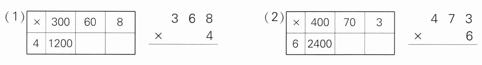 $\begin{array}{r}3\ 6\ 8 \\×\ \ \ \ \ 4 \\\hline1\ 4\ 7\ 2\end{array}$