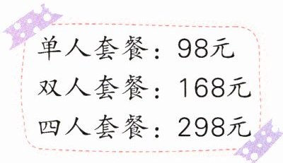 (2) 选择 3 份双人套餐和 1 份单人套餐,一共需要花费多少元?