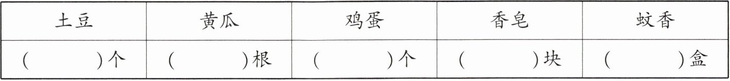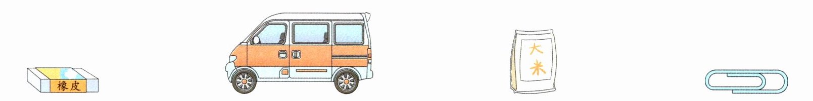 2. 下面几种物体,先估计1千克各有多少,再称一称,数一数,把结果填在表内。