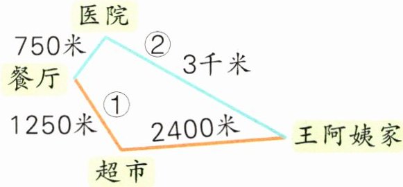 4. 王阿姨在家通过平台在餐厅点了一份外卖,外卖员取餐后选择走哪条路更近?
