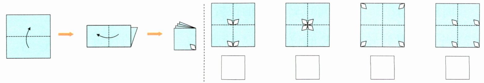[解析]可以照样子按步骤剪一剪,再展开,得出答案。注意折叠时翻口的方向,剪小洞时,注意小洞的位置。