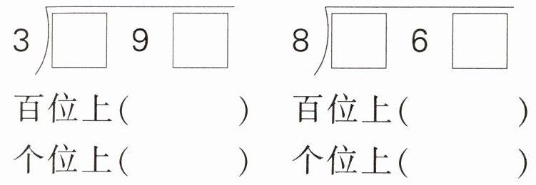 (2) 下面算式( )的商中间有0。