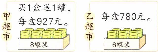 4.927÷(8+1)=103(元) 780÷6=130(元) 103<130,甲超市的茶叶便宜些。