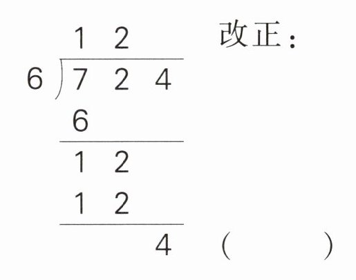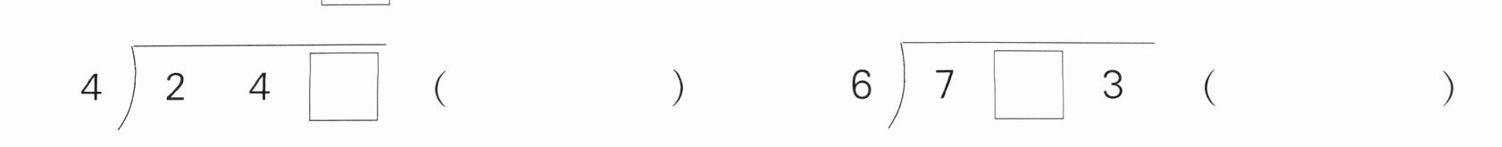 【解析】左式中,被除数的前两位24除以4正好除尽,要使余数是3,则□里可以填3或比1个4多3的数,即□里可以填3或7。右式中,三位数的个位上是3,要使余数是3,则7□0除以6应正好能除尽,将0~9分别代入计算,可得720÷6=120,750÷6=125,780÷6=130,故□里可以填2、5或8。