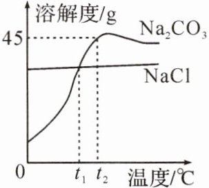 7. (教材变式题)(2024·赤峰改编)我国北方盐碱湖地区有“夏天晒盐,冬天捞碱”的说法。结合$Na_2CO_3$和NaCl的溶解度曲线分析,下列说法正确的是 (