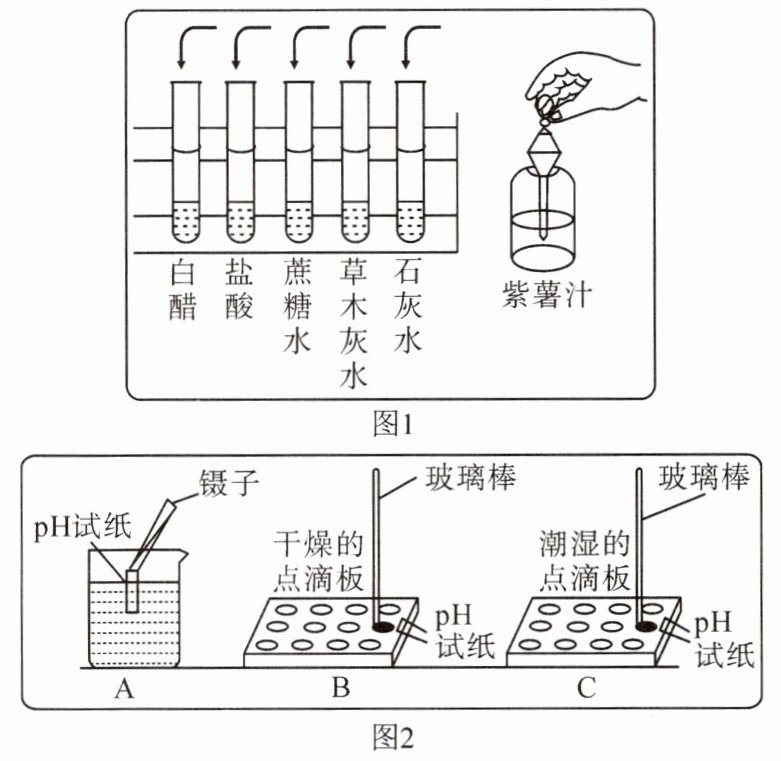 (1)把自制的紫薯汁按图 1 所示分别滴加到试管中,观察到的现象如下表所示: