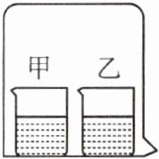 3. (开放与拓展)如图所示,一个倒置的烧杯内放置了甲、乙两个小烧杯。甲杯中盛有浓盐酸,乙杯中盛有紫色石蕊溶液。一段时间后将会观察到