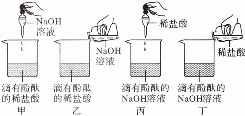 5. (中考·黔西南)化学学习小组用盐酸和烧碱探究中和反应的 pH 变化。实验时将一定量的盐酸溶液注入锥形瓶中,再逐滴加入烧碱溶液,边滴边振荡,通过传感器测定并绘出 pH 变化如图。下列分析错误的是(