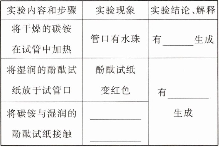【做出假设】物理 化学 【收集证据】水 酚酞试纸 不变色 氨气 【获得结论】加热碳铵发生的是化学变化 【反思与交流】