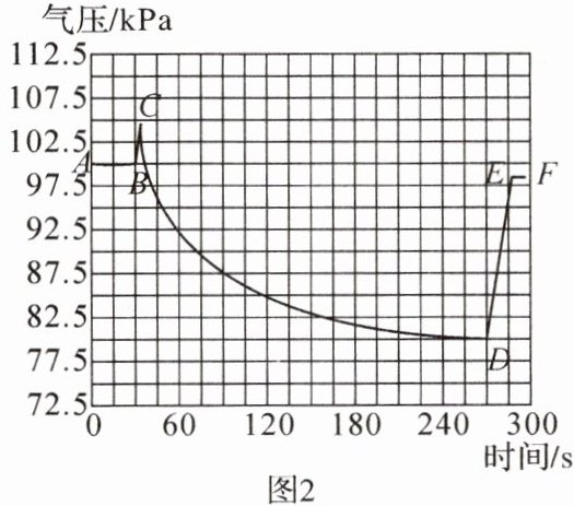 13. 【核心素养·科学思维】图1是利用足量红磷燃烧测定空气中氧气体积分数的实验,实验中用传感器记录广口瓶中气压随时间变化的情况如图2所示。