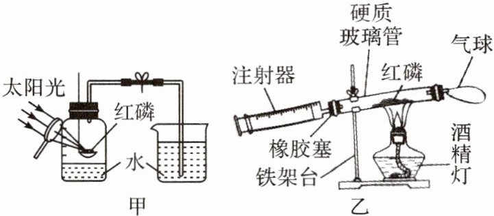 甲:使用放大镜聚光点燃燃烧匙中的红磷,