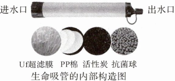 6. (2024·牡丹江)“生命吸管”可以解决野外极限环境中的饮水问题。“生命吸管”中没有用到的净水方法是(