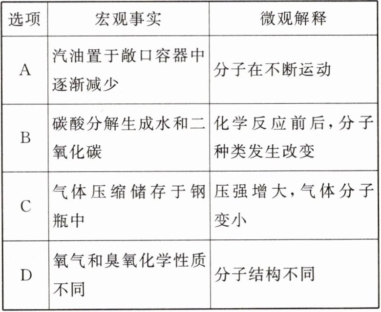 6. 下列关于宏观事实的微观解释正确的是(