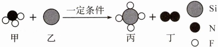9. 芯片蚀刻过程中,当物质$ NF_3 $与硅反应时生成的物质均为气体,在蚀刻物表面不留任何残留物。该反应微观示意图如下,下列说法正确的是(
