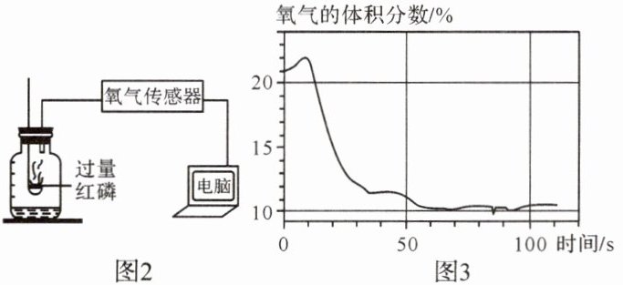 。(2)利用图 2 所示装置进行燃烧条件的进一步探究。实验测得集气瓶中氧气的体积分数随时间的变化曲线如图 3 所示。