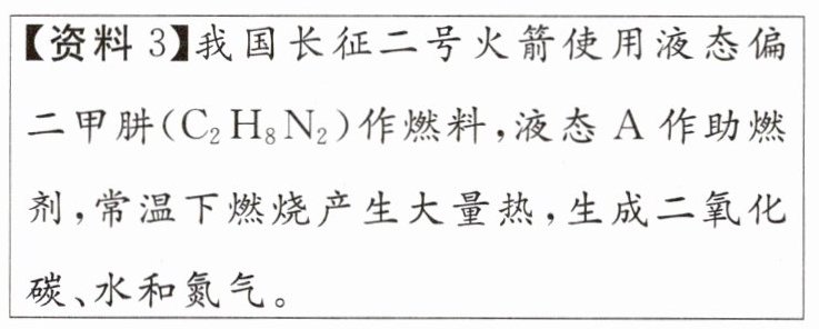 (4)根据化学方程式:$C_2H_8N_2 + 2A = 2CO_2↑ + 4H_2O↑ + 3N_2↑,$推断 A 的化学式是
