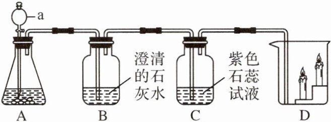 (用化学方程式表示)。(5)D 中蜡烛低的先熄灭,说明二氧化碳具有