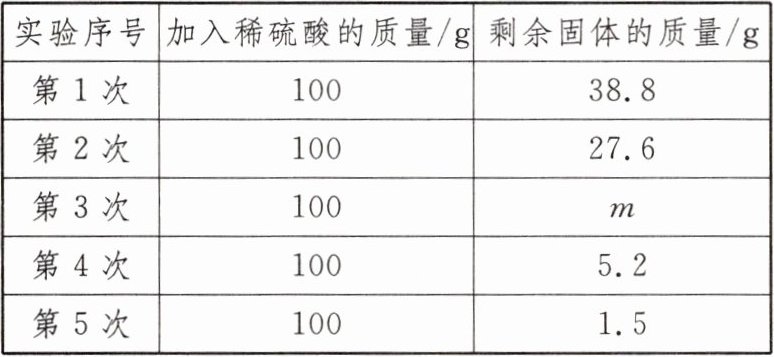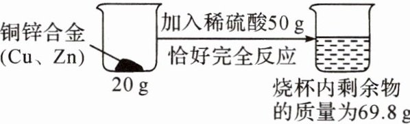 5. (2025·黔西南模拟)铜锌合金外观形似黄金,某化学兴趣小组为检测合金的成分,进行了如图所示的实验(注:铜与稀硫酸不反应,锌与稀硫酸反应的化学方程式为:$Zn+H_{2}SO_{4}= ZnSO_{4}+H_{2}\uparrow)$。