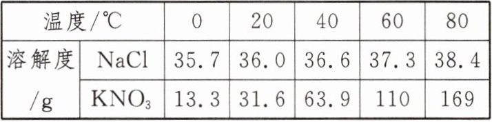 D.用上表数据绘制成NaCl、$KNO_3$的溶解度曲线,两条曲线交点对应的温度范围是0~20℃
