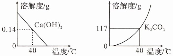 D.40℃时$,Ca(OH)_2$溶解度比$K_2CO_3$溶解度大