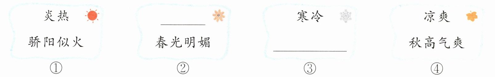 三 下面是状状制作的四张季节词语卡片,请你根据要求完成练习。