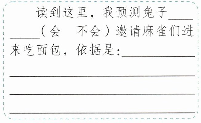 3. (语文要素)接下来,还会有谁到泥房子里来?他们又会做些什么?泥房子又会变成什么样的房子呢?请你给这个故事预测一个结尾。______