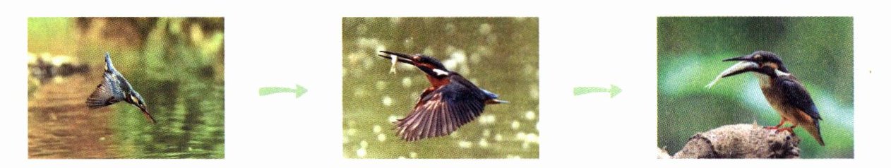 2. 新题型 看翠鸟捕鱼三连拍,结合选文,在括号内填入描写翠鸟动作的词。 考点1