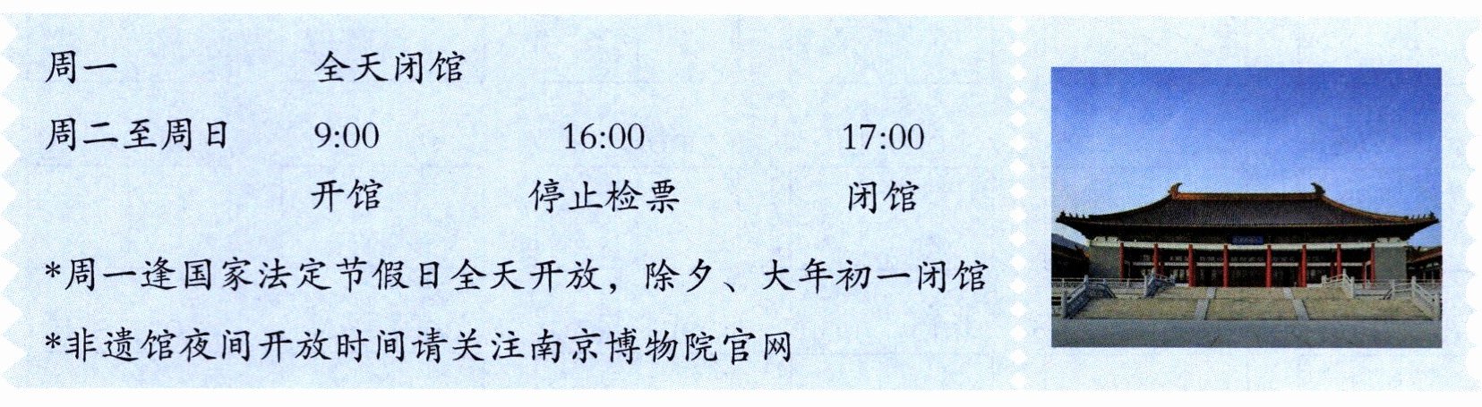 B.南京博物院在法定节假日全天开放。
