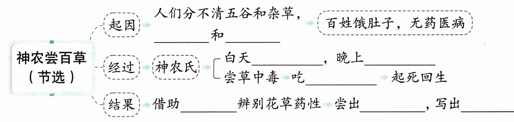 2. (语文要素)通读全文,根据提示补全下列思维导图,把握文章的主要内容。