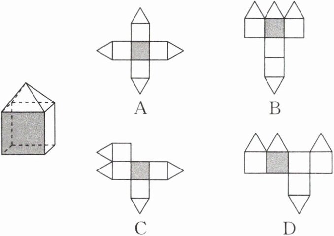B 【点拨】A,C选项涂有颜色的面是几何体的底面,与题意不符,D选项不能折成几何体,故选B.