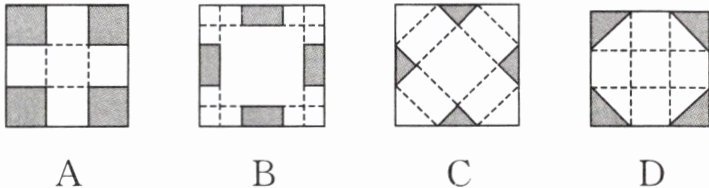 3. 下列四张正方形硬纸片,剪去阴影部分后,如果沿虚线折叠,可以围成一个封闭的长方体包装盒的是(