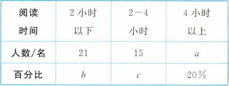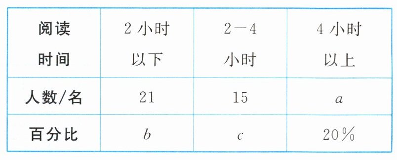 3. [2025·烟台期末]学习委员调查本班学生一周内课外阅读情况,按照课外阅读时间进行统计,结果如下表: