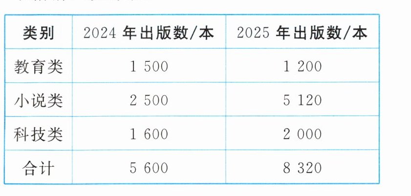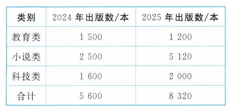5. 下面是某出版社2024年和2025年出版的各类书籍情况统计表: