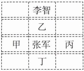 14. 如图,如果把张军前面的第2个同学李智记作$+2$,那么$-1$表示张军周围的同学是(
